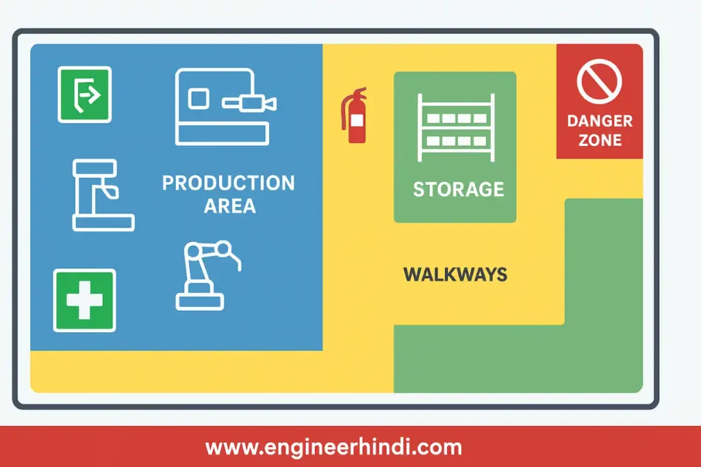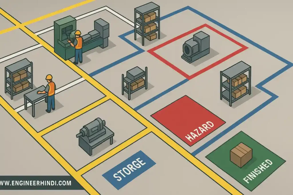 Floor marking से workplace को clearly defined zones में divide किया जाता है।
