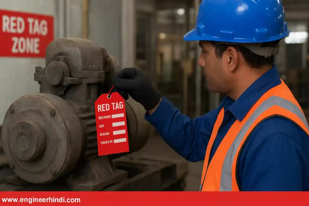 2. Tag: Red tag लगाएं (Item name, Date, Reason, Tagged by)