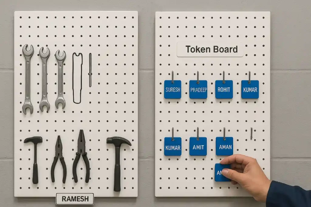 • नाम का Token बोर्ड पर लगा होता है, तो उस Worker की जिम्मेदारी बन जाती है, उस सामान को वापस वही पर सुरक्षित रखने की